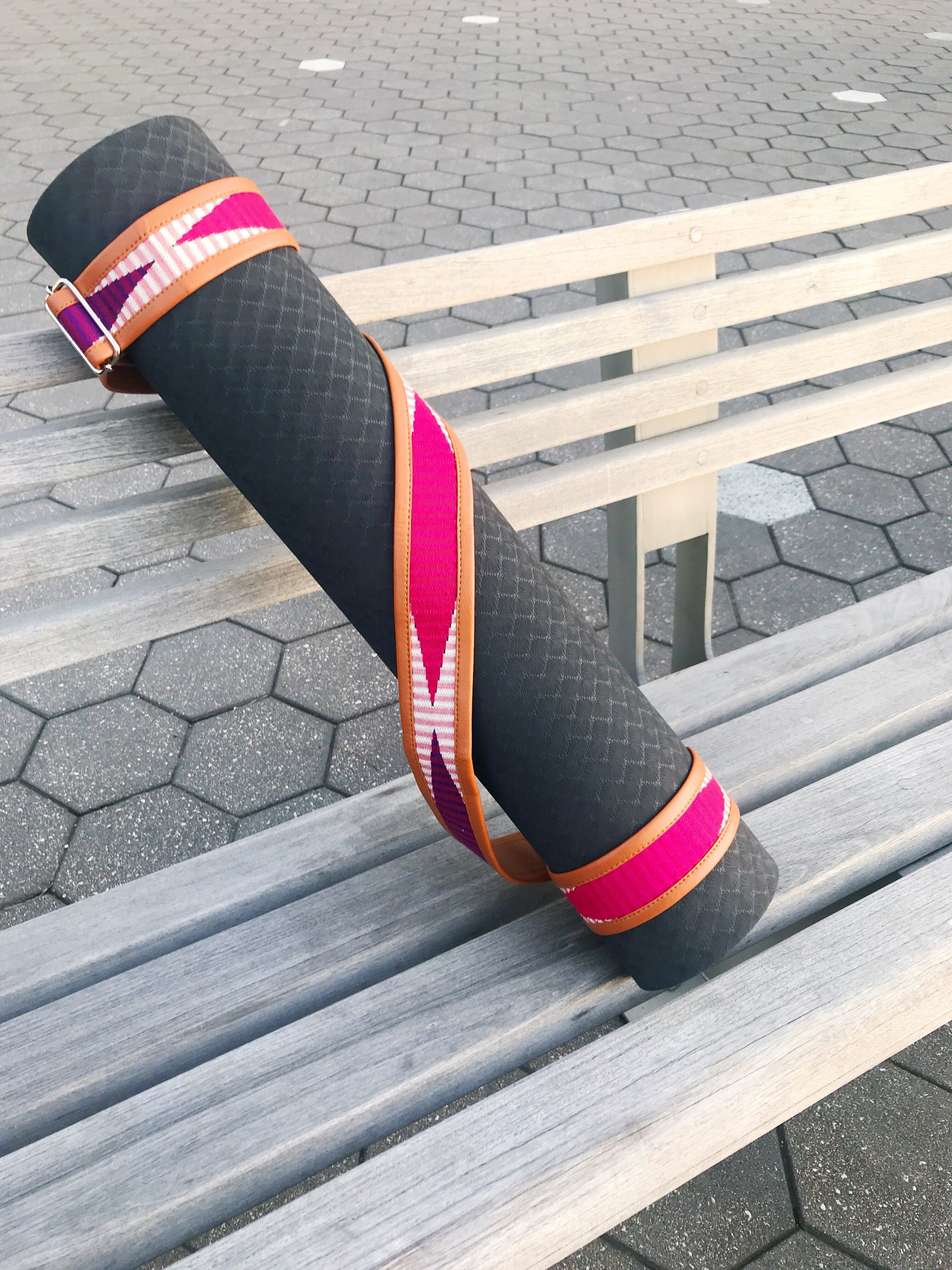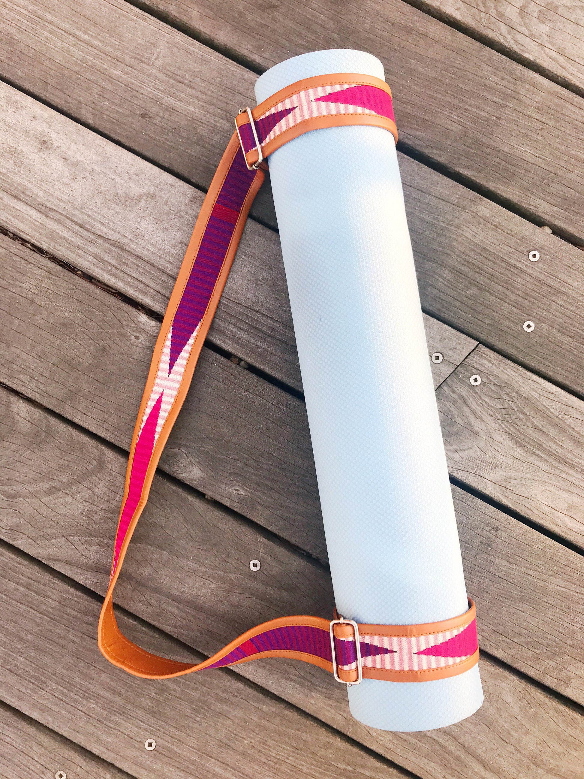 A stylish yoga mat strap for all yogis on the go. Handmade by our artisans in Bali, using the Rangrang textile weaved by a group of women in Nusa Penida island, off the east of Bali.